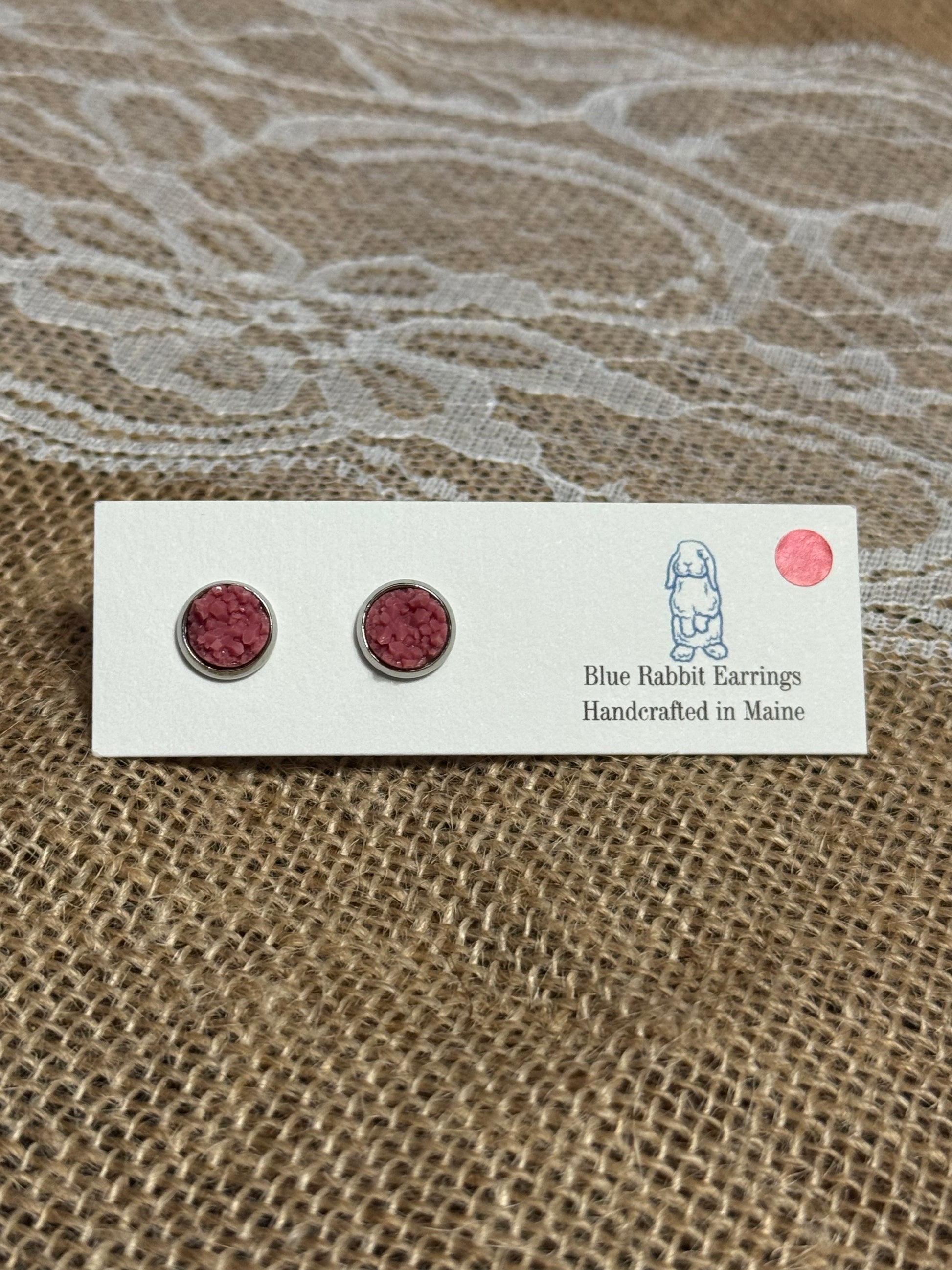 8mm salmon color chunky faux druzy studs. Stainless steel findings.