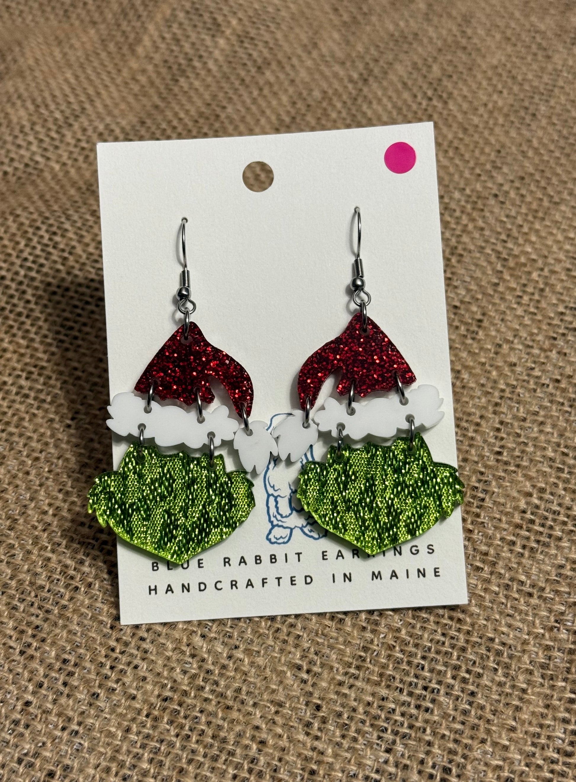 Acrylic grinch inspired earrings. Stainless steel findings.