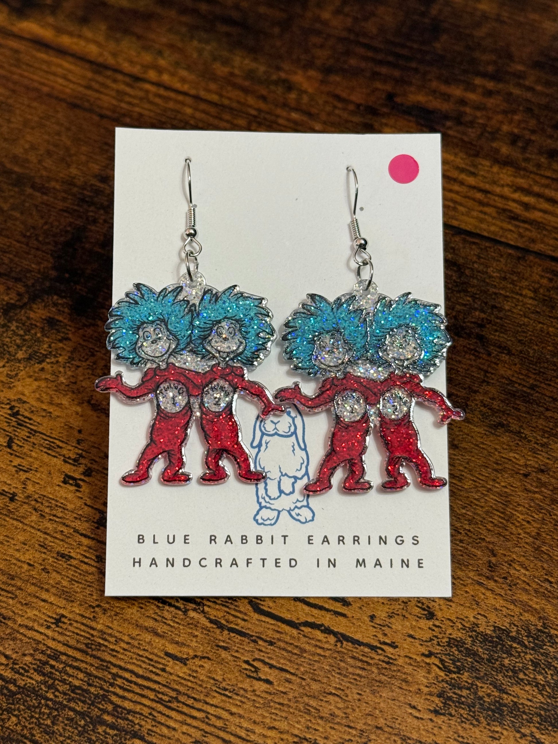 Acrylic Thing 1&2 inspired Earrings. Stainless steel findings.