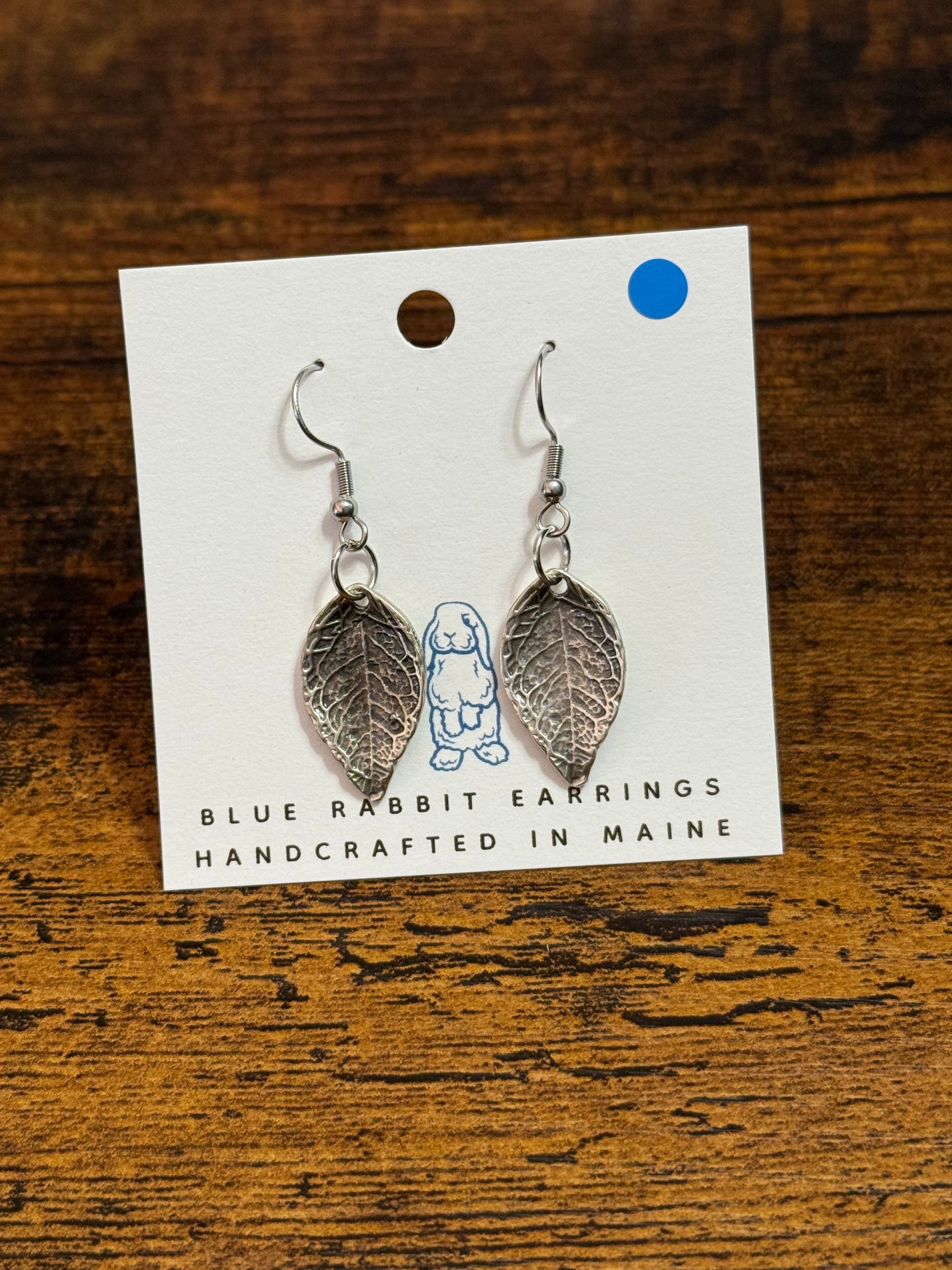 Antique silver petite size leaf earrings. Stainless steel findings.