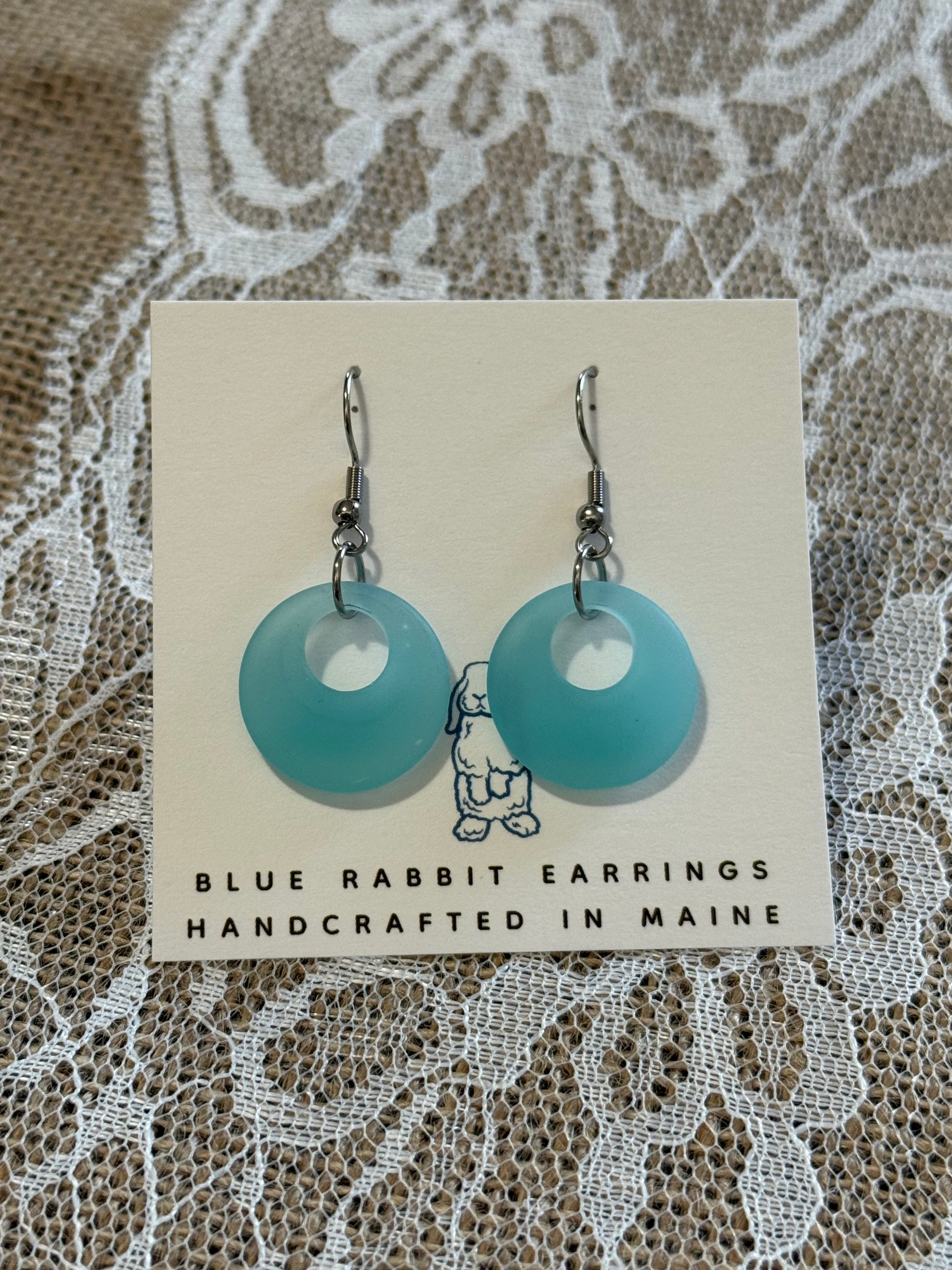 20mm opaque blue opal sea glass earrings. Stainless steel findings.