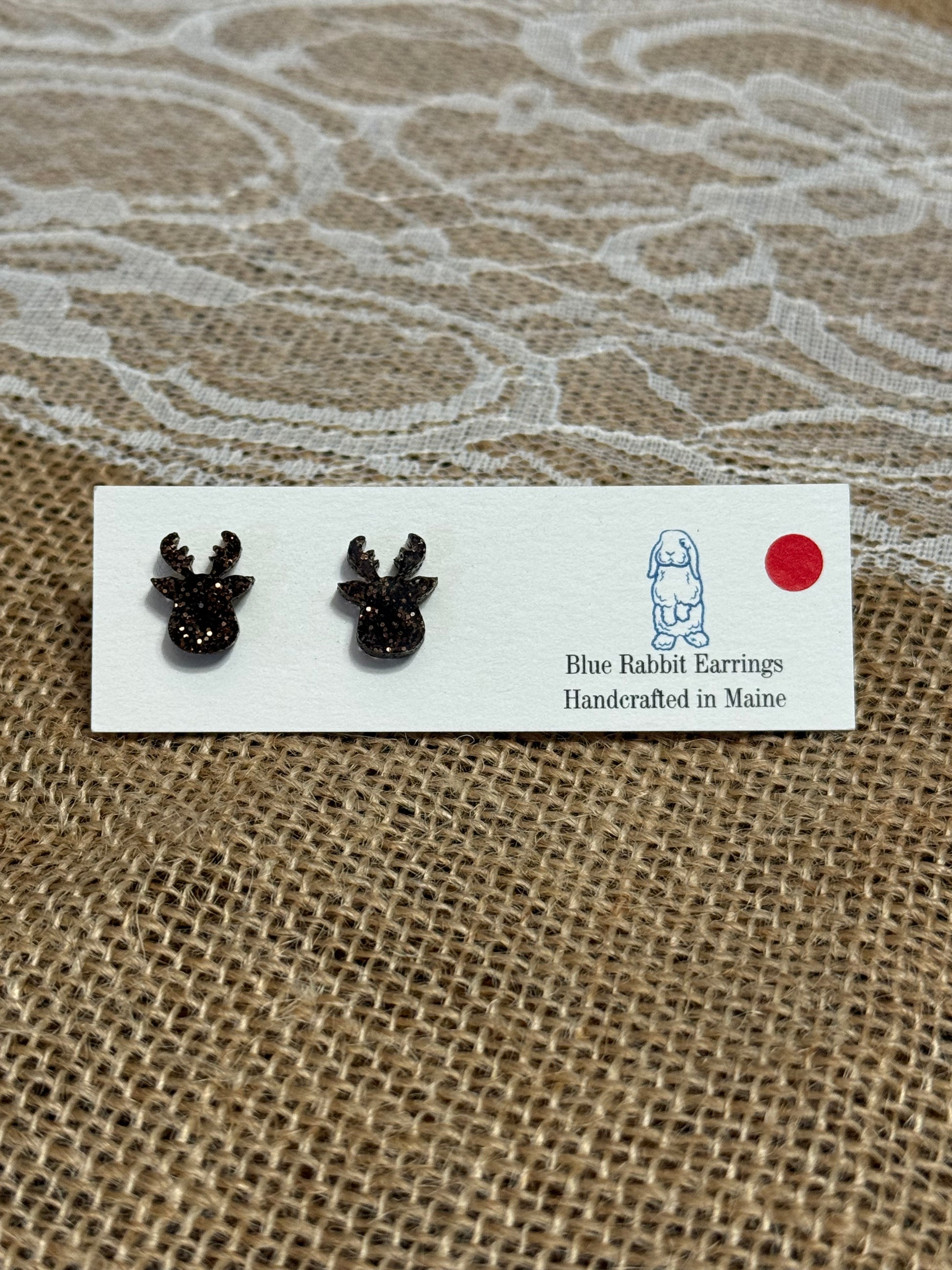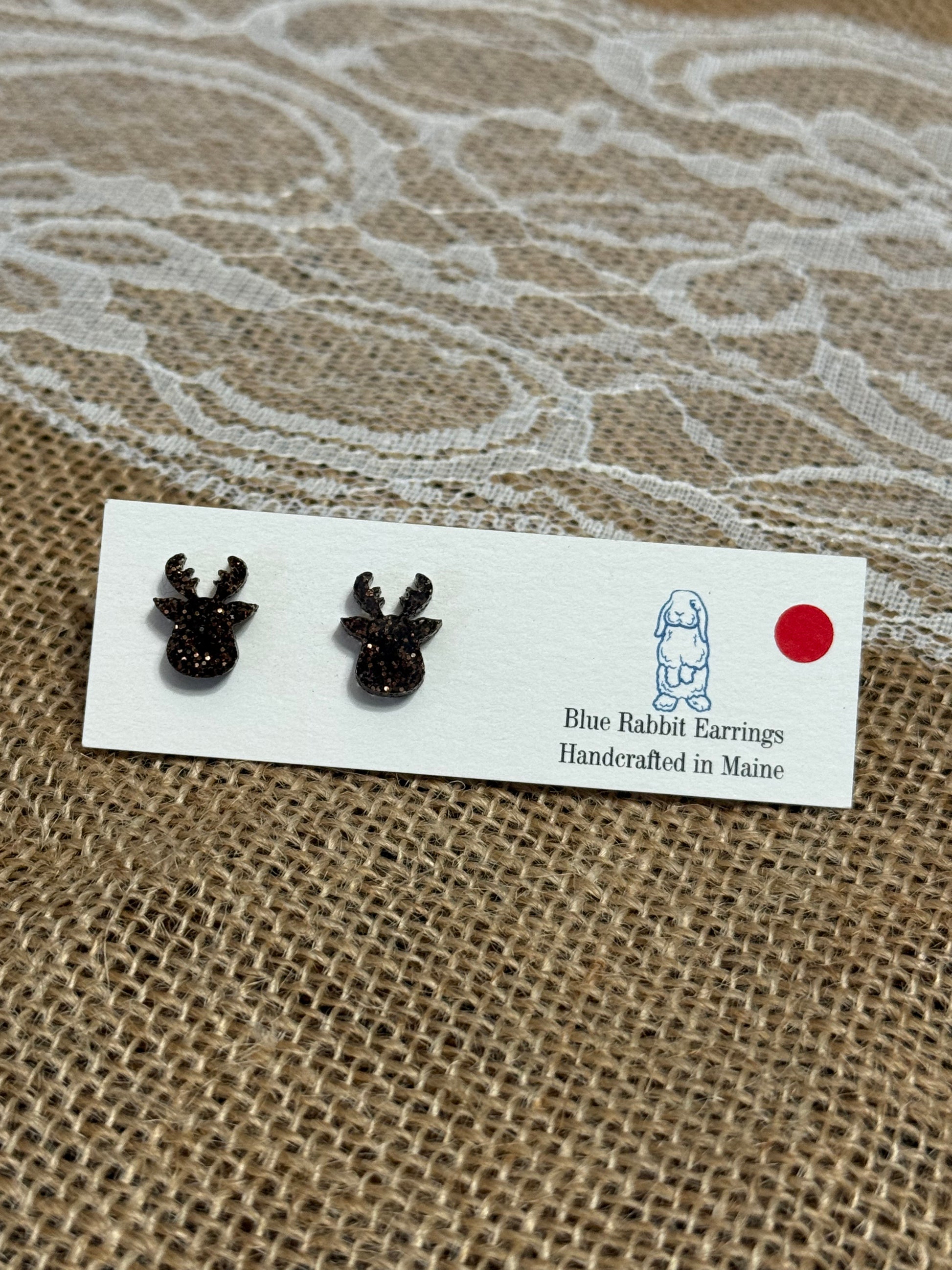 Brown glitter acrylic reindeer studs. Stainless steel posts.