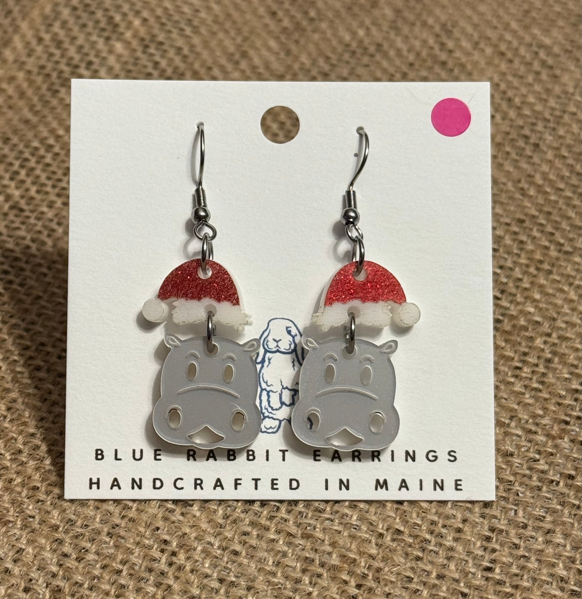 Acrylic Christmas hippopotamus earrings. Stainless steel findings.
